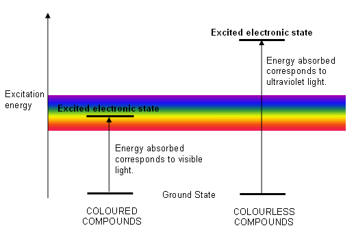 - The energy needed to excite an electron in a coloured compound is referred to as the excitation energy:
