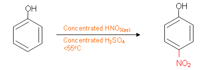 - Looking at the molecule of phenol, the phenolic hydroxyl group which is present on paracetamol is already present and so does not need to be added. To start the synthesis, a nitrogen group needs to be added to the ring. From the aromatic reactions, an NO2 group can be added to the benzene ring in an electrophilic substitution reaction: