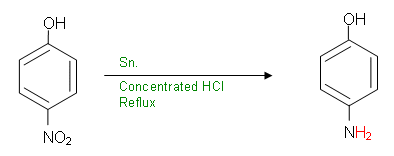 - The NO2 group on the benzene ring needs to be converted to an amide group. This cannot be done in one step; it is first necessary to convert it to a primary amine group: