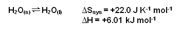 - The reaction is at equilibrium; liquid water and ice exist together at 0oC.