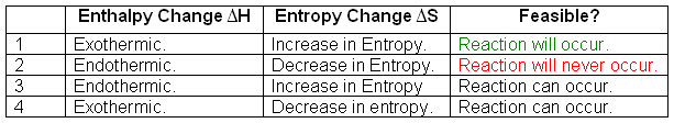 - The total entropy change can then be used to predict whether a reaction is feasible or not at a given temperature.