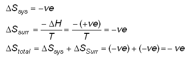 - Both the processes of ice melting at 10oC and water freezing at -10oC are spontaneous reactions; they can occur. Both these reactions occur as they result in an increase in the total entropy.