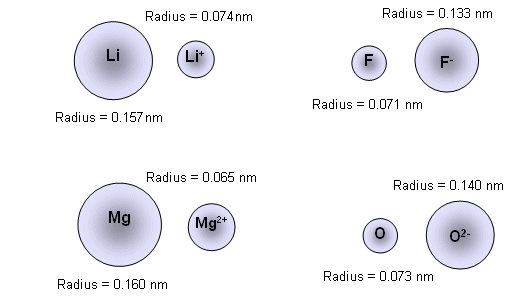 - Atoms become ions when electrons are added or taken away; this affects the size of the atomic radius.