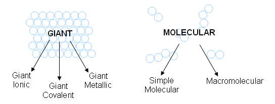 - Giant structures go on indefinitely, whereas molecular structures are made up of groups of atoms.