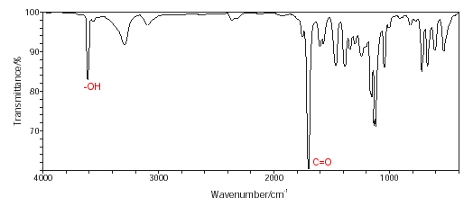 - Infrared spectroscopy shows the presence of an OH group and a C=O group.