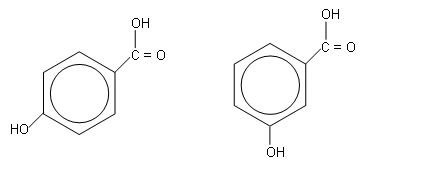 The mass spectrum fragmentation pattern shows that the structure cant be either of the two below, as a H2O has been lost from the spectrum, which cannot be lost from either of these molecules, as there must be hydrogen bonding occuring between the -COOH and -OH groups in order for a water fragment to be lost (above right):