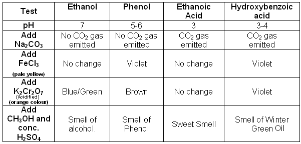 To test for a carboxylic acid, mix with a carbonate and look for effervescence. CO2(g) emitted, can test with limewater.
