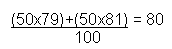 Bromine has two isotopes. 50% of bromine is 79Br, and the other 50% is 81Br. Work out the average mass: