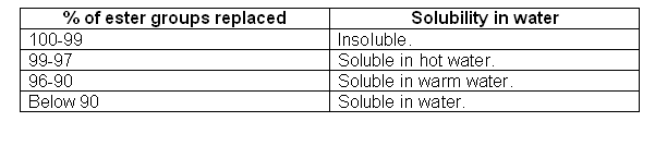 - The plastic’s solubility depends on the percentage of ester groups which have been removed.